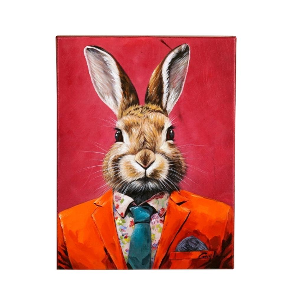 Wenn Sie auf der Suche nach einem einzigartigen Kunstwerk sind, das Ihrem Raum eine besondere Note verleiht, ist dieses Bild des Business-Hasen die perfekte Wahl. Die kraftvollen Farben und das originelle Motiv machen es zu einem Blickfang in jedem Raum. Holen Sie sich dieses handgemalte Kunstwerk und bringen Sie eine fröhliche Atmosphäre in Ihr Zuhause oder Büro.
