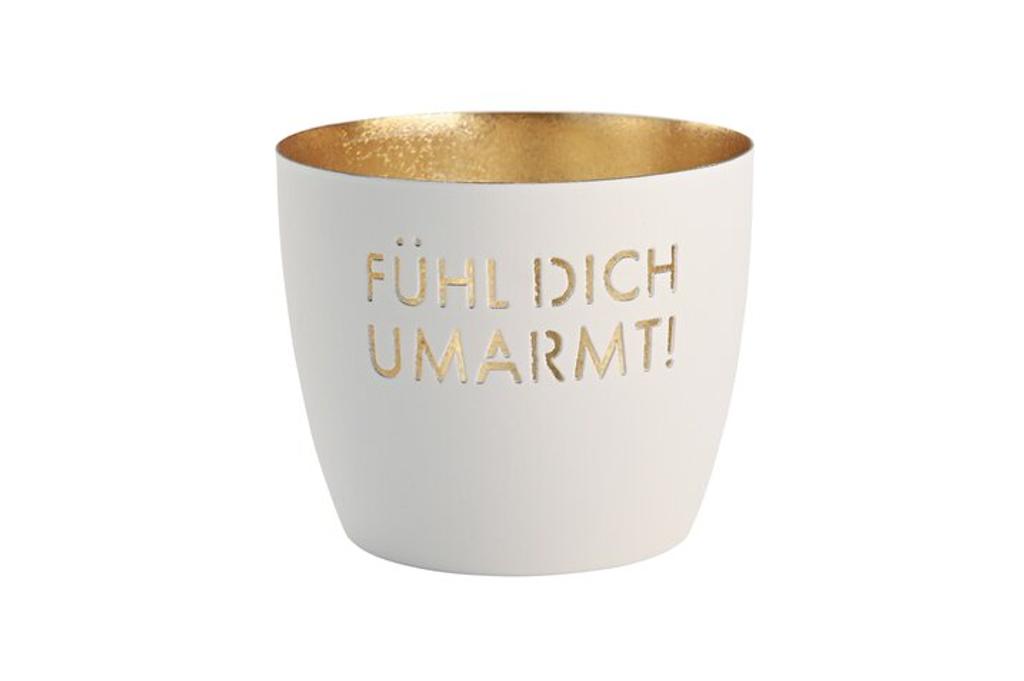 Madras, Windlicht, M, Motiv: Fühl dich umarmt!, weiß/gold