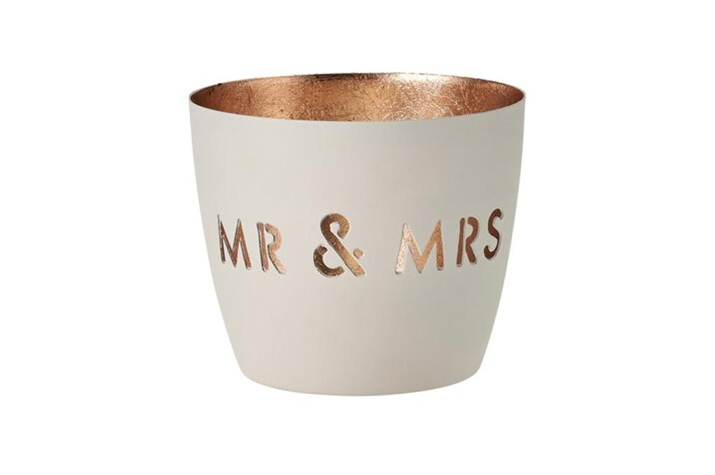 Madras, Windlicht, M, Mr & Mrs, weiß/gold